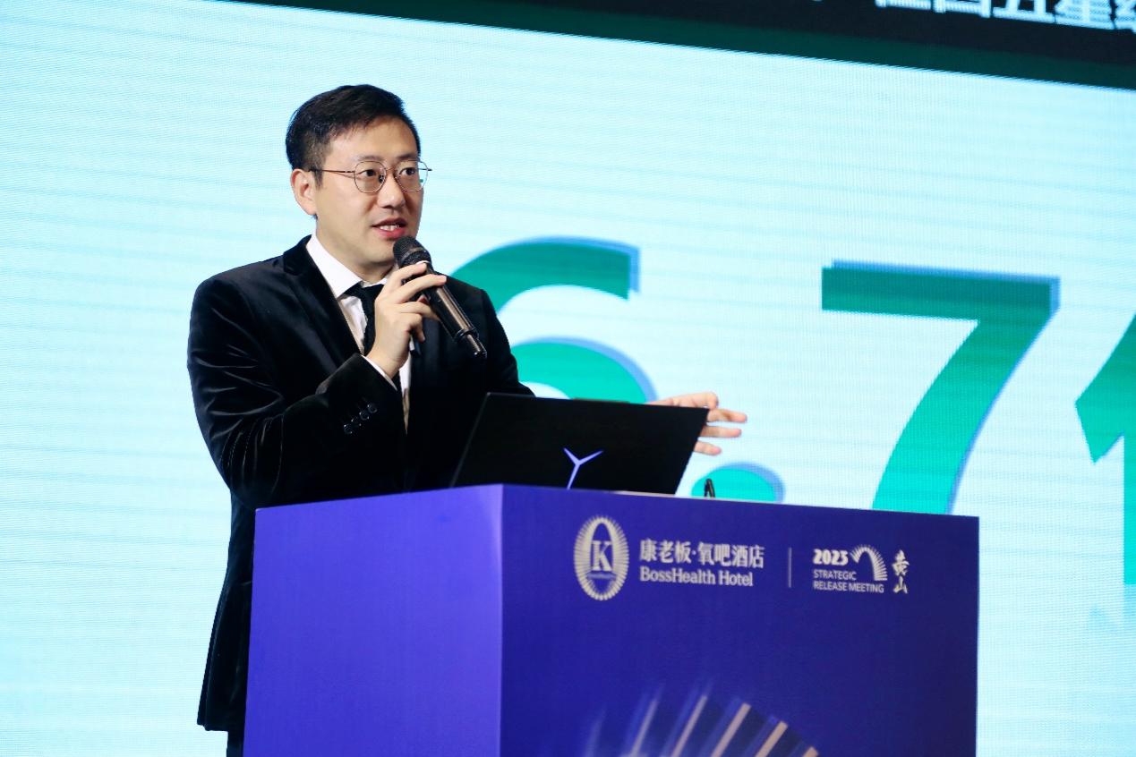 会上,康老板健康科技集团联席总裁兼康老板·氧吧酒店CEO 张鹤分享了康老板·氧吧酒店的一年多来的发展成果。